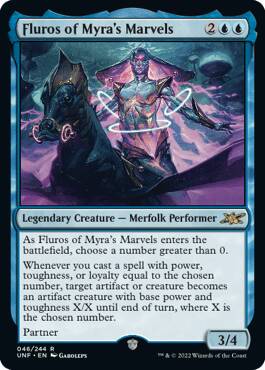 【规则】当~进战场时,选一个大于0的数字。每当你施放的咒语的力量,防御力,或忠诚指示物等于所选数字,则直到回合结束,目标神器或生物成为一个基础力量和防御力为X/X的神器生物,X是你所选的数字。拍档(你可以派出两名各自具有拍档异能的指挥官。)