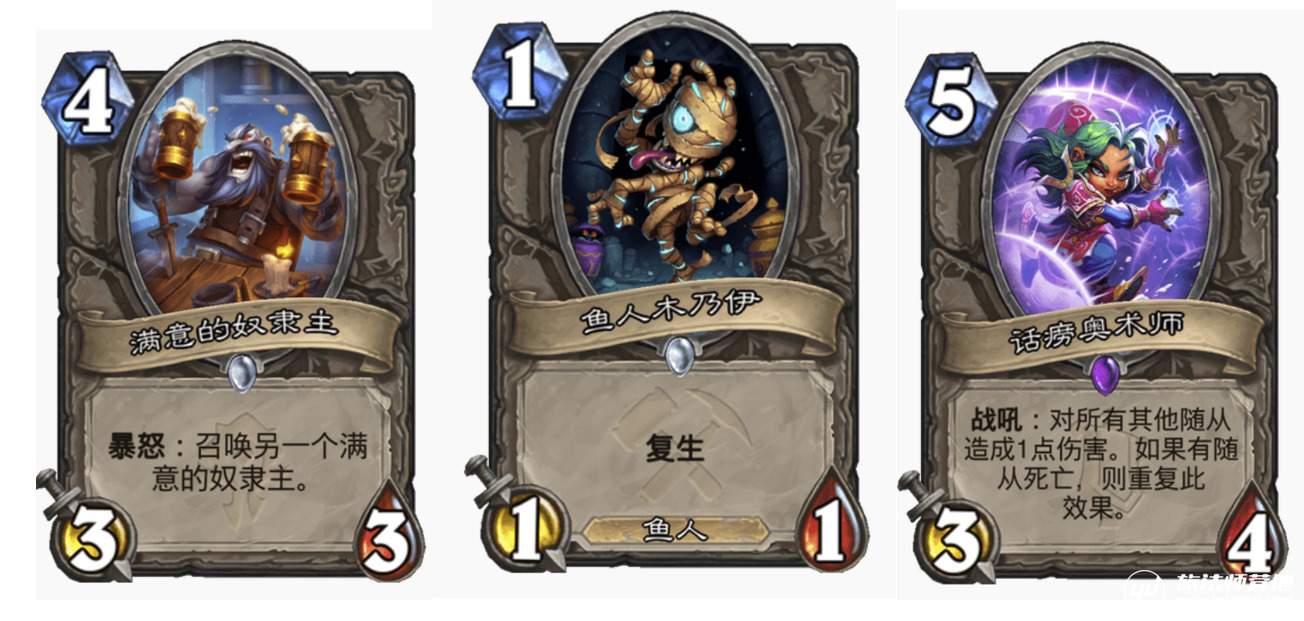 用来刷尸体和注能,一般一套尸体就够了(大帝伤害也不小了),可以丢一套来解场(什么10费邪爆),4费奴隶主甚至有机会ex杂毛多的卡组