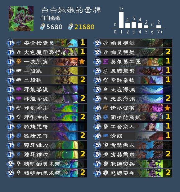 安全监察员,火色魔印奔行者:两张一费过一张的过牌都只带一张,因为无底海渊抽上来两张实在太蠢了,相当于直接少了一张牌