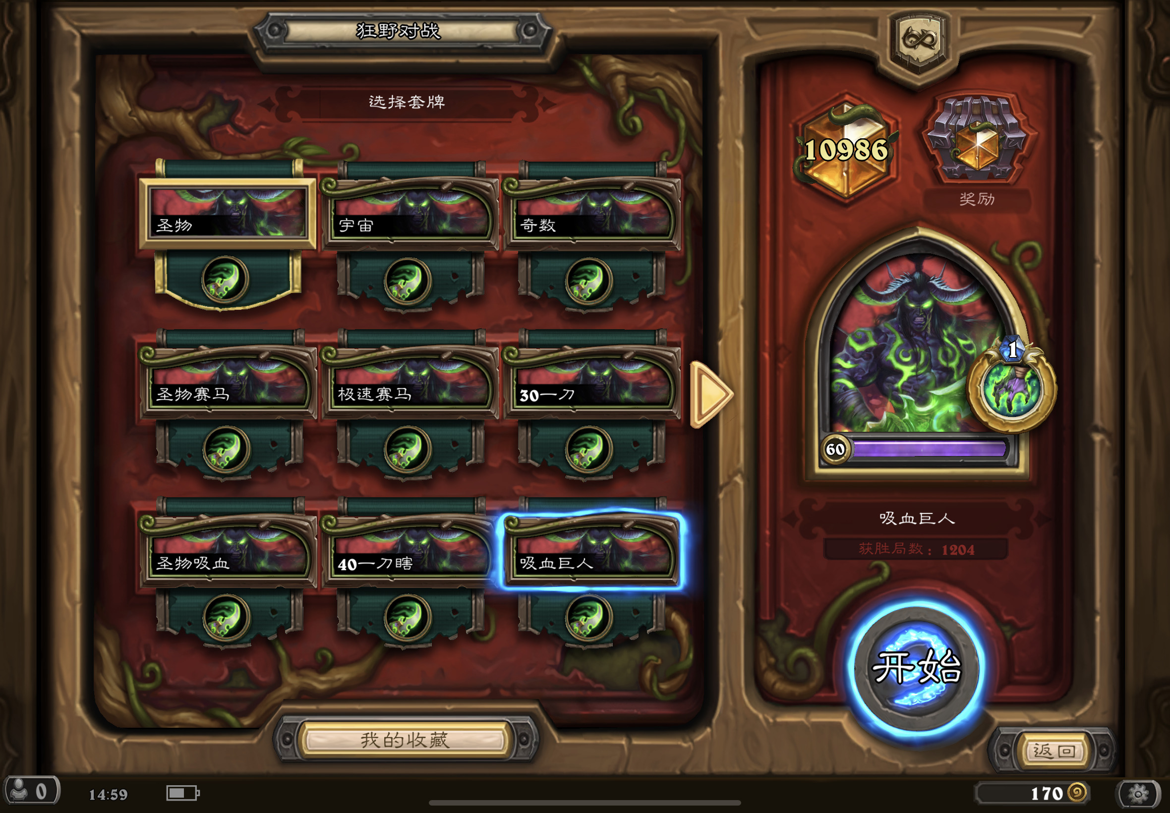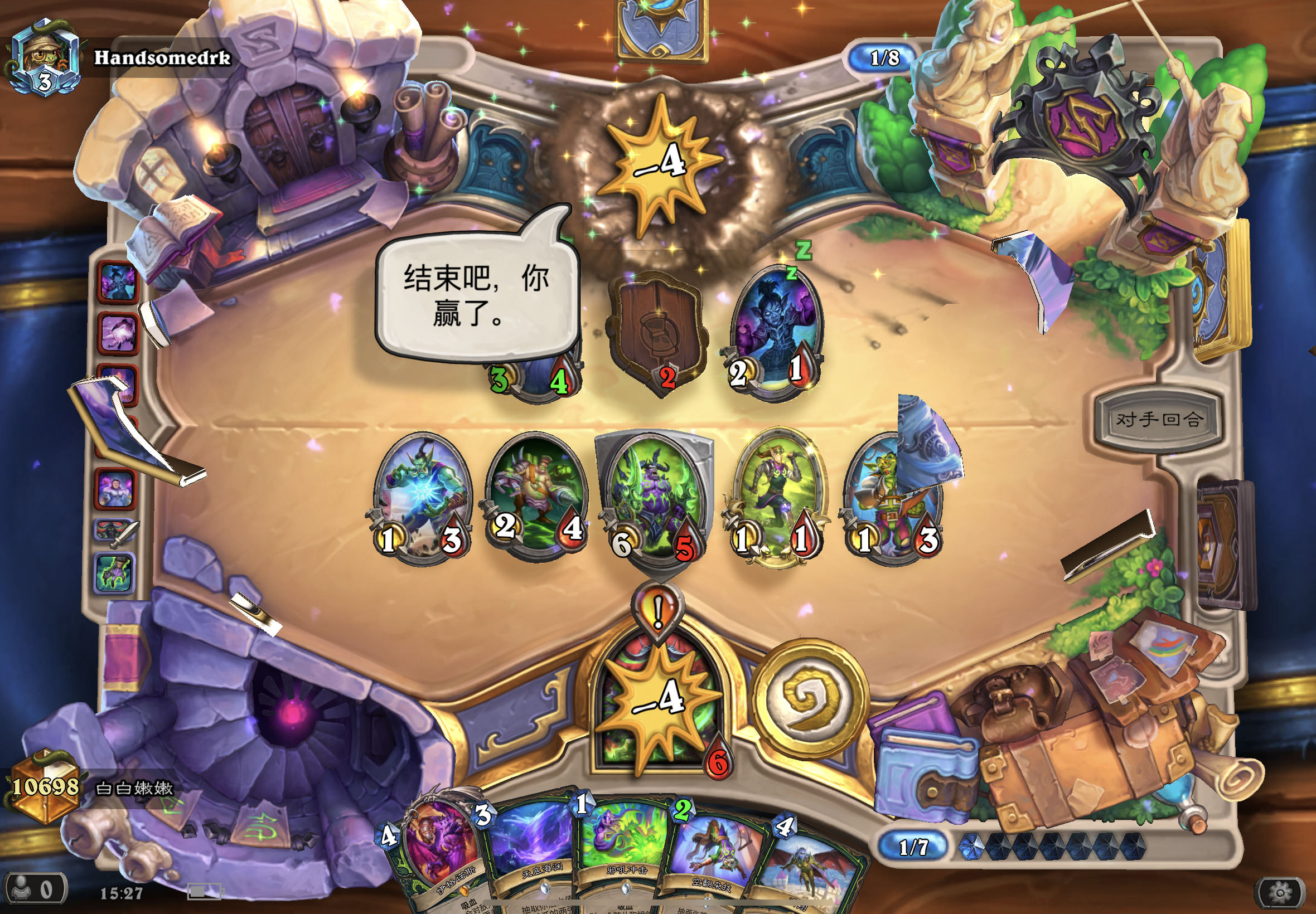 机克术:73开,狂野唯一能找到的马速跟任务瞎相当的卡组,赛马就完了,不要亏过牌硬下巨人,对面不可能解不掉。