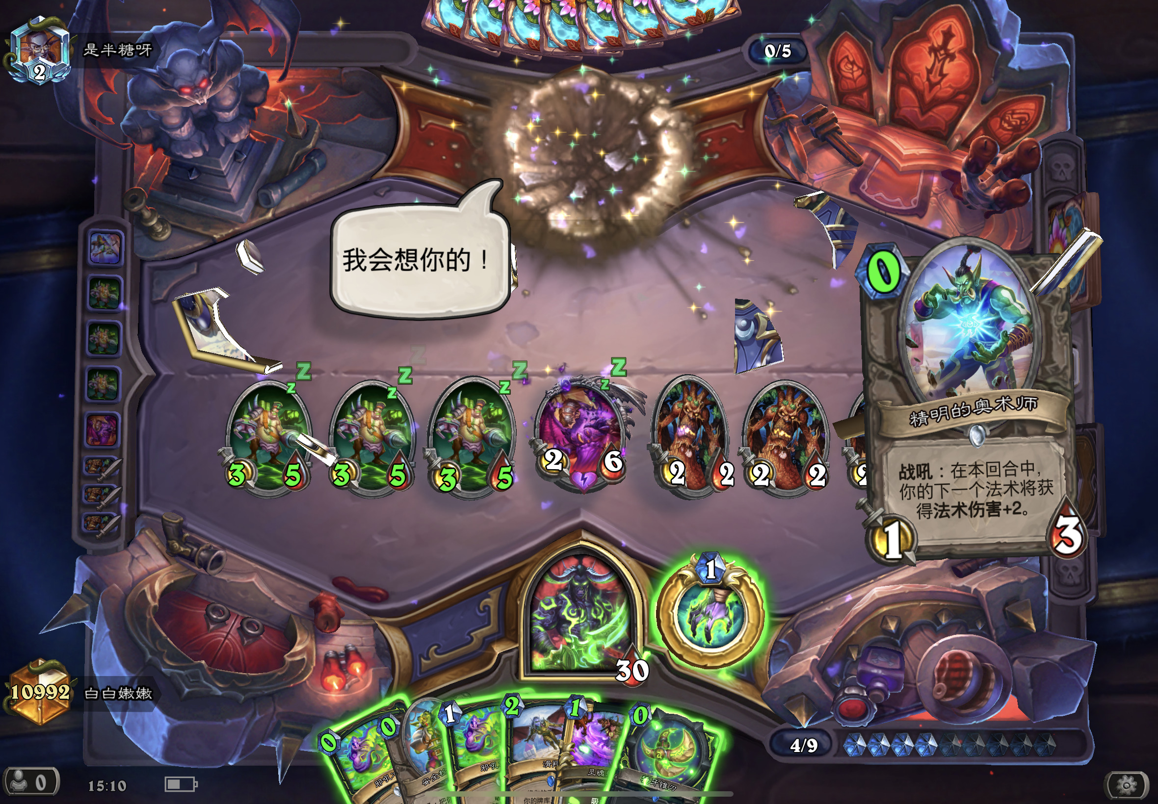 咒鱼/诅咒术:46开,和打宇暗/战吼萨类似,手里诅咒直接打,晚一回合做任务也不是很要紧。