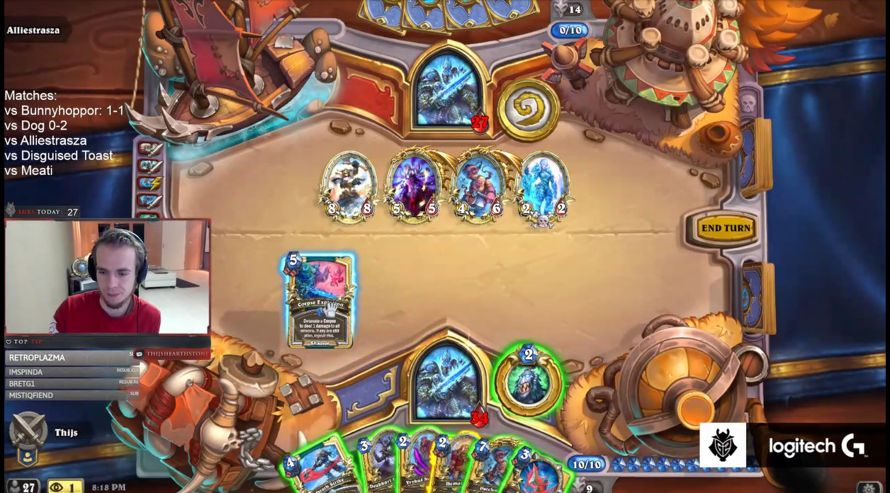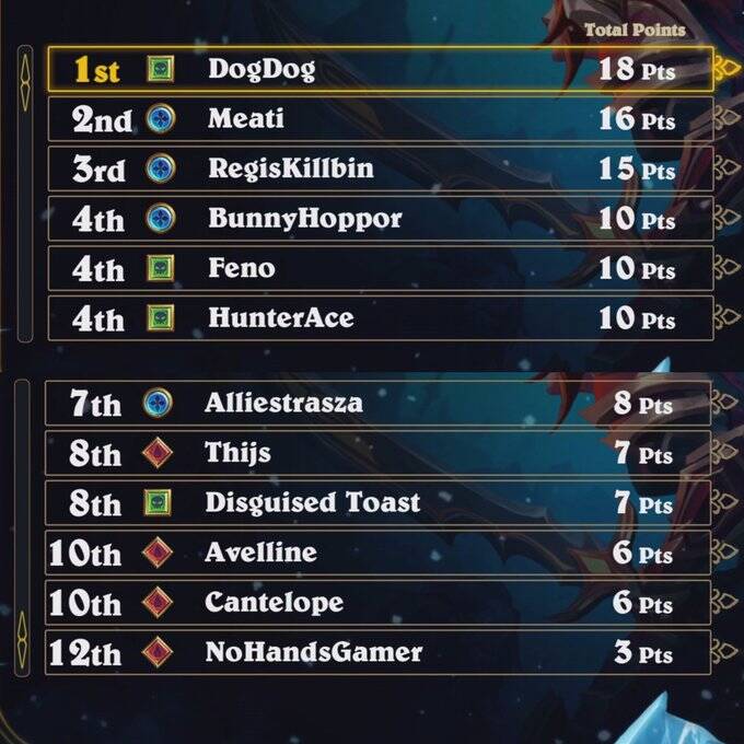 从最后的积分图也能看出来,玩红色的四位选手喜提倒数前三+一个第八名。红色最后的归宿应该是在未来组出一些控制卡组的时候充当主力核心或者做其他颜色的配角,像灵界打击,心脏打击,邪爆,血液沸腾都是很不错的解牌,但也就仅此而已,三红的三张牌都无法作为制胜核心,甚至二红的优质牌也就是解牌而已,这注定了鲜血这个符文只能当辅助的命运。