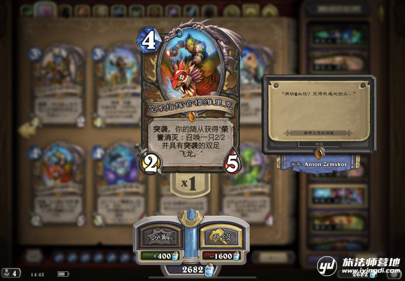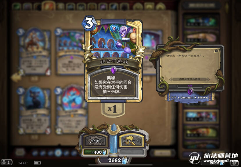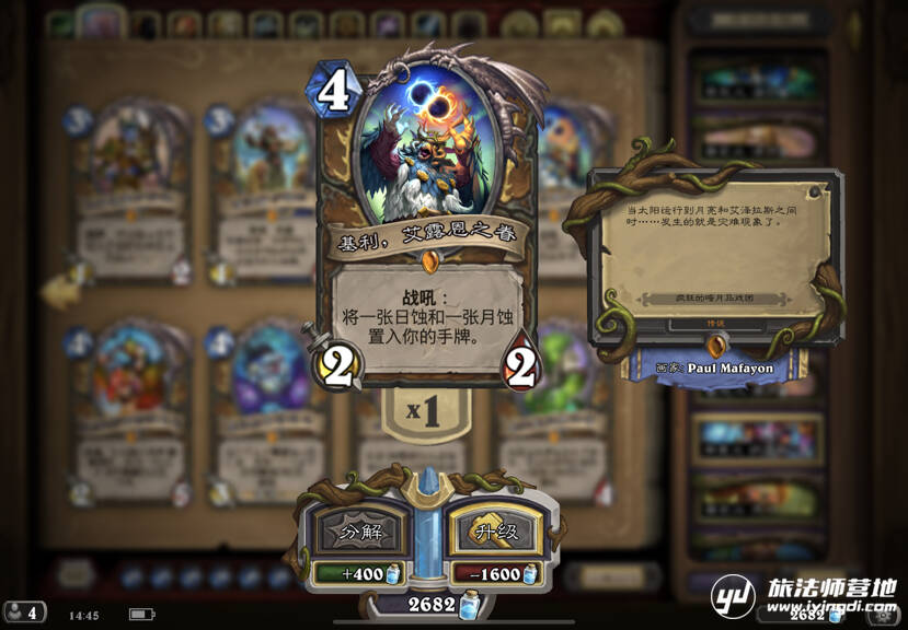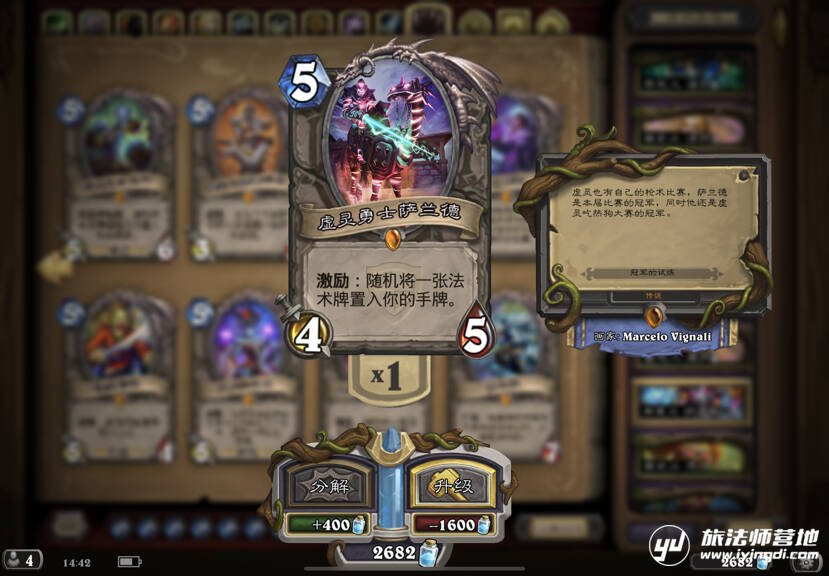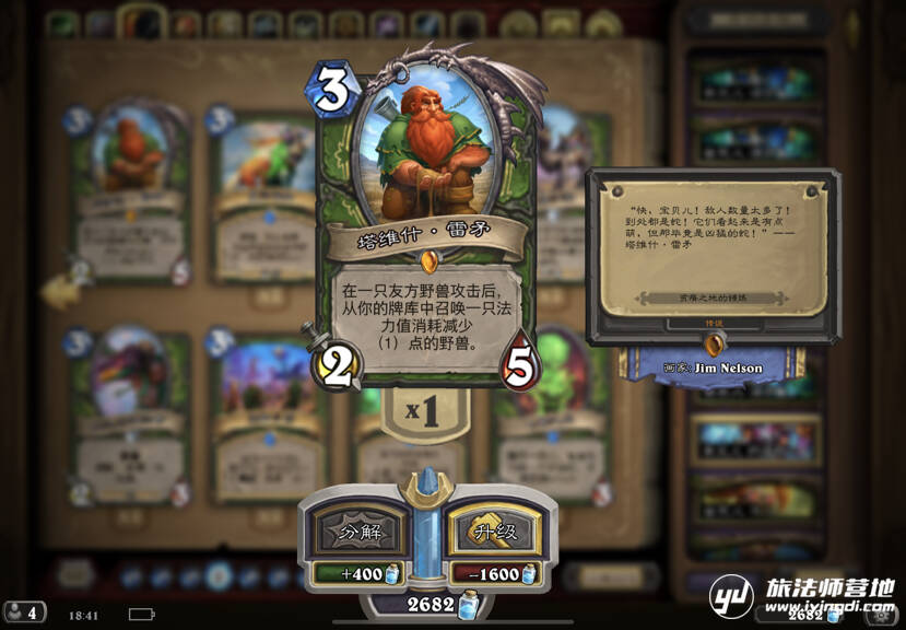 萨兰德:玩炉石以来做的第二张橙卡,做他的时候,还拆了一张亚煞极,现在想想真不应该
