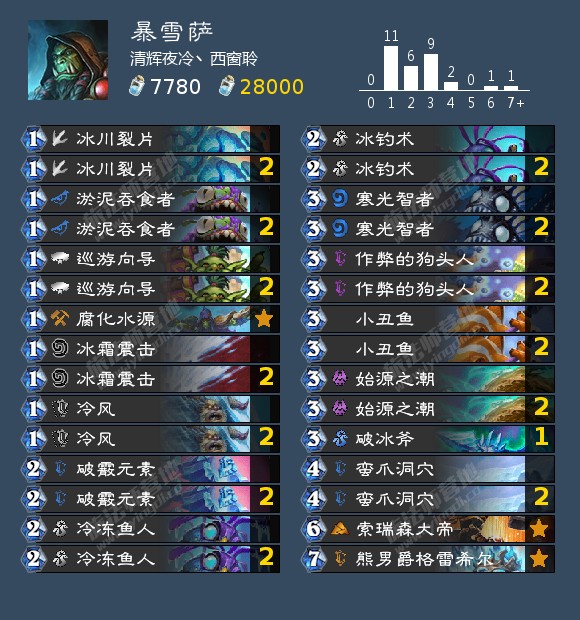 冰萨我在天梯上从未见过,知道核心卡是莫拉比(还知道他是个**) 但直到我把这套卡组定下来之前我都一直把他带着,直到最后我才依依不舍地把他从卡组中删掉。