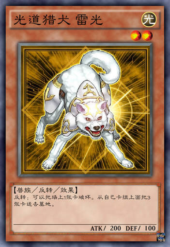 直到2017年2月27日,K社复刻了光道猎犬,然后偷偷摸摸把由“選択して破壊”改为“選んで破壊”,意味着炸卡效果在反转效果发动时不用取对象。