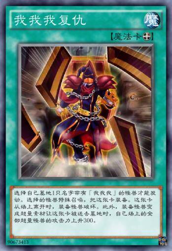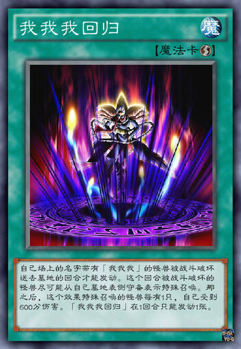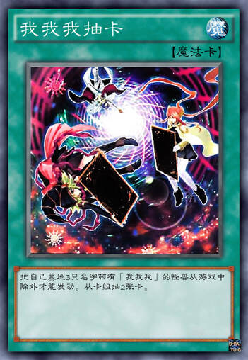 本家魔法,收录于DP12,这张卡的出现意味着【我我我】正式成为字段,但是该卡盒只收录了它和另一张陷阱【我我我护盾】,此时【我我我】本家只有一只怪兽卡,无法理解。