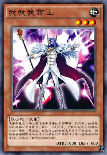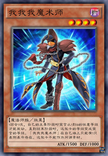 GENF(705)收录了第一只「我我我」怪兽——「我我我魔术师」。它拥有把自身等级变成1~8的能力。