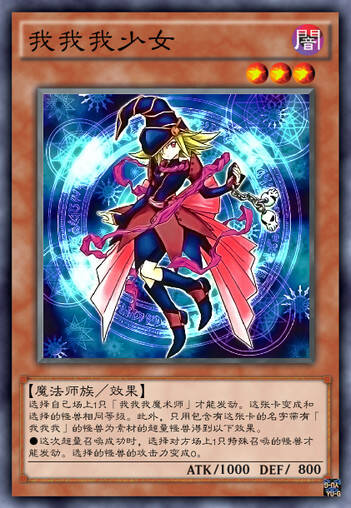 她的出场使得「我我我」正式成为一个系列。身份neta了【黑魔术少女】,就好像在向初代游戏王的魔术师师徒致敬一样,不过他们的组合更像是不良少年团。