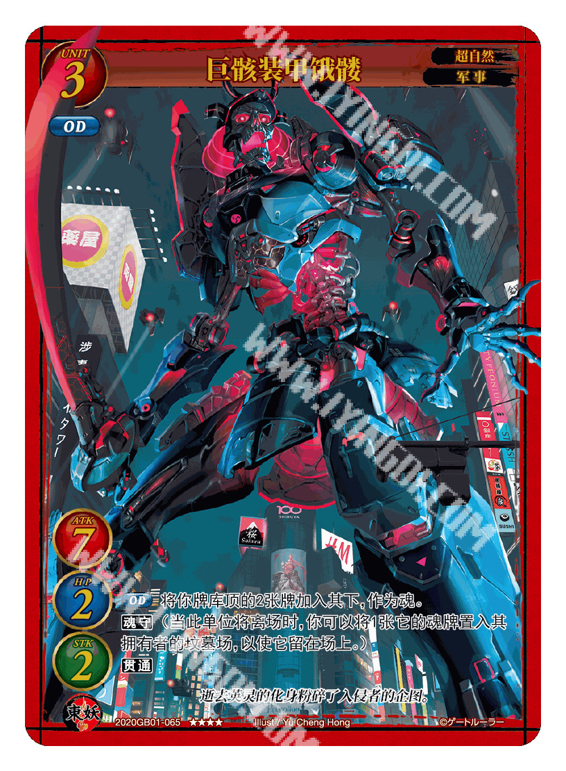 巨骸装甲饿髅的压制力非常强大,一旦饿髅入场,对手的防御区便可以说是空门大开了,7点ATK配合贯通效果足以撕开任何防护,同时拥有两张魂卡的魂守也会消耗对手多次频率才能解掉饿髅。