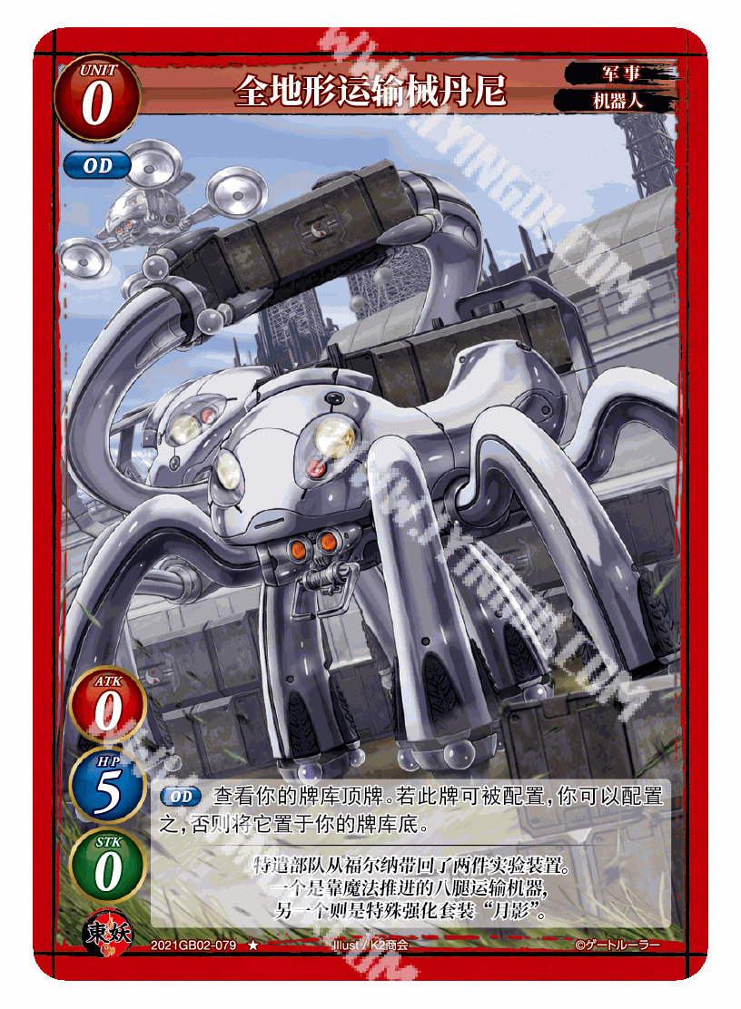 全地形运输械丹尼是一张防御能力较强的低等级观顶单位,在卡组中我们有足量的事件卡可供其发效,也有机会过滤掉鬼上身。