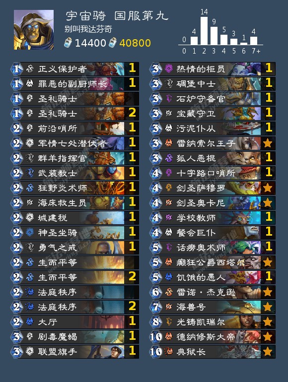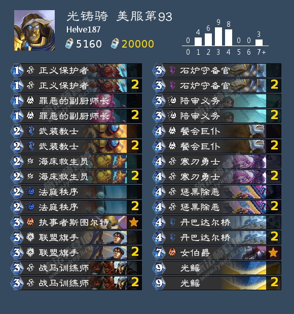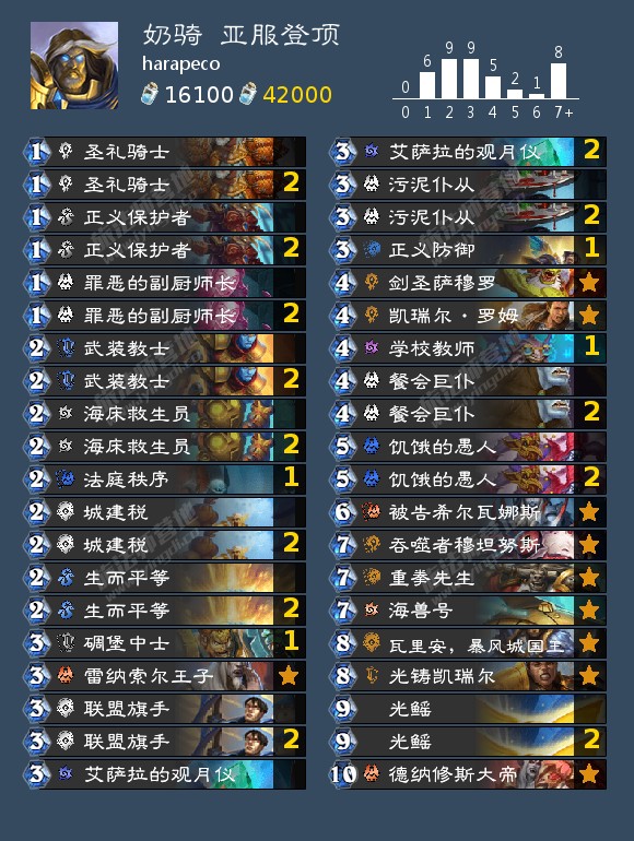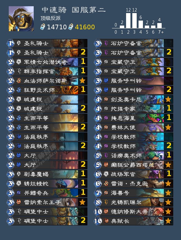 奇迹牧被德鲁伊压制之后,骑士也失去了它们最大的优势对局,现在的骑士完全变成了一套建立在光铸凯瑞尔的顶伤害能力之上的“慢速卡组”。高情商地说,现在骑士可能出场的形态因此变得更多了;低情商地说,现在的骑士别的牌带什么都菜得差不多= =