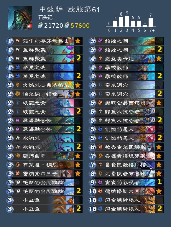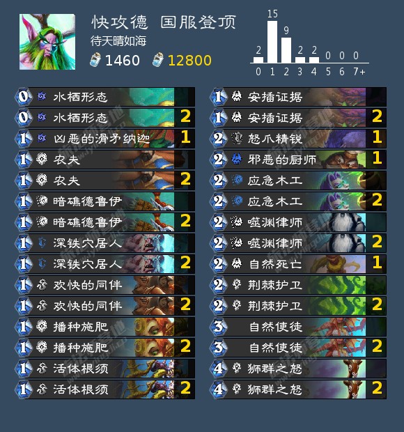 -嗜睡的藻农*2、暗礁德鲁伊*2、应急木工*2、话痨奥术师*2、癫狂公爵西塔尔;