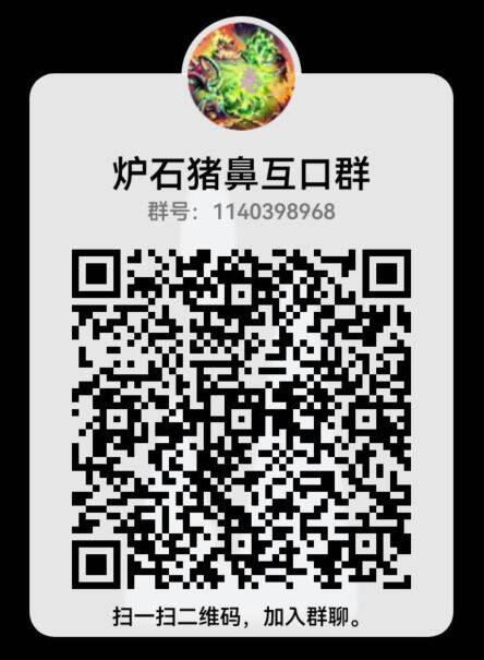 我自己的一个炉石QQ聊天小群:1140398968,投稿也可以加,欢迎。