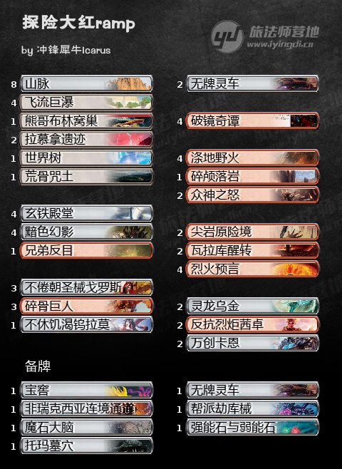红色如何ramp,不靠伊雷岩壮举,也不靠加速神器(探险没有合适的),而是靠一张不起眼的赞迪卡再起铁牌——涤地野火。