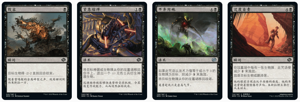 黑色则是有回收手段和最好的去除,也有不错的抓牌来赚取价值。