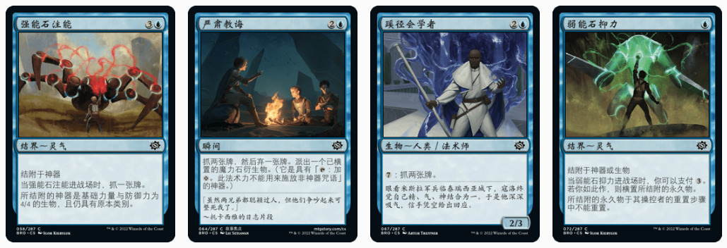 纯蓝的优势在于能最大化的神器和魔力石的强度,同时也有最好的法术力水槽,也有合理的去除和反击咒语来弥补套牌单色而缺失的强度。