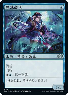 你可以使~当成战场上任一生物的复制品来进入战场,但它额外具有海盗此类别,且具有“每当此生物或另一个具相同名称的生物对任一牌手造成战斗伤害时,你抓一张牌。”