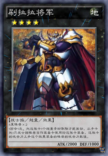效果要求战士族,因此刷拉拉将军的特化卡组往往战士族怪兽比较多,但一般在这种情况下,断钢剑王要好用的多。