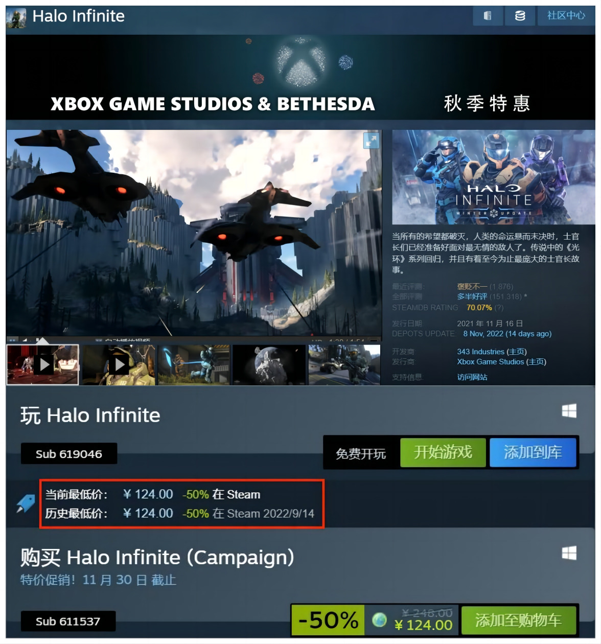 4.《光环:无限》直接半价且新史低,就喜欢这么直接的!!!