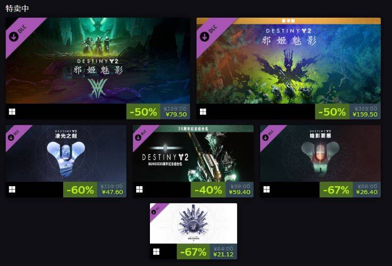 另外,Steam黑五秋季折扣期间,前往steam购买《命运2》dlc可享最高50%折扣的新史低,有需要的噶殿不要错过此次特卖咯~