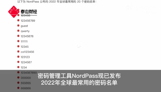 新浪科技报道,密码管理工具NordPass现已发布2022年全球最常用的密码名单,结果显示用户仍在使用众所周知的弱密码。