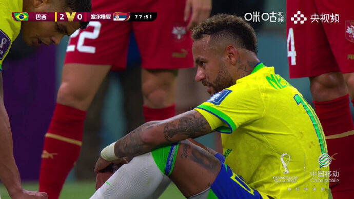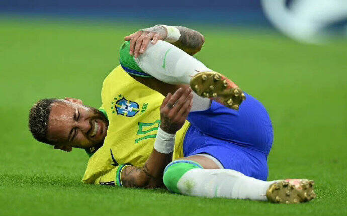 在巴西队首场小组赛中,内马尔几乎受到了严重侵犯多达9次。离场时,脚踝处明晰肿胀。