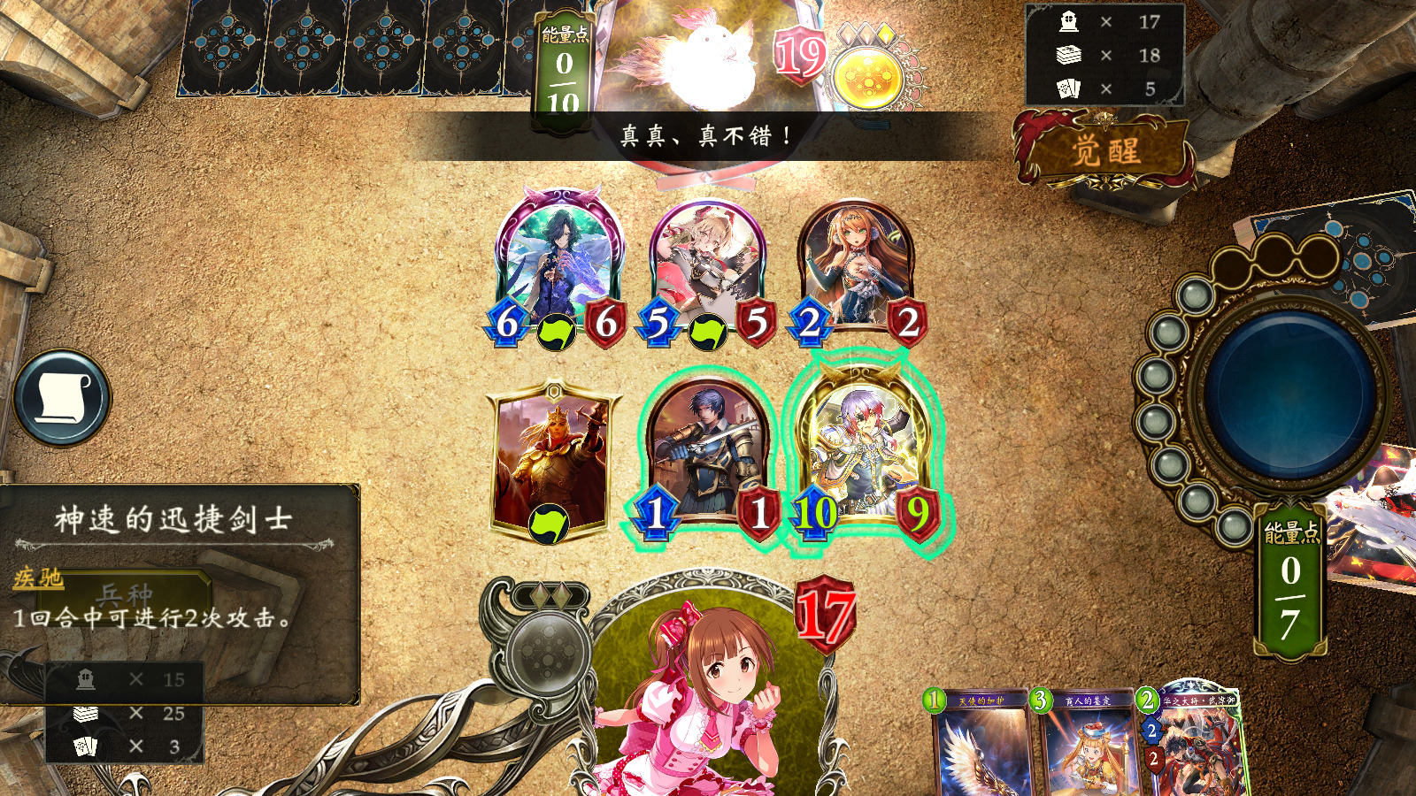 回复进化点的组件足够的话,还应积极使用进化点,以尽快触发三相女神·芭依波卡赫的额外效果。手牌很好的话,可以保留芭依波卡赫的福音用于配合神速打斩杀。无法叫杀或大概率被挡住的话,可以在不会爆牌的情况下直接使用福音补牌。