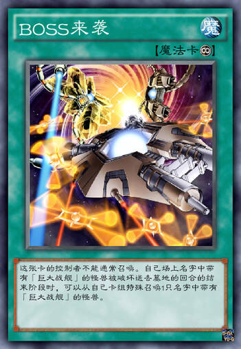 Boss来袭这张卡还原了这个场景,每当自己的场上的【巨大战舰】被破坏后就可以召唤新的Boss。