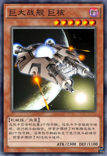 本家第一只巨大战舰怪兽,这张卡TCG化的时候这个系列还不是字段,因此TCG就擅自只翻译了后面的巨核,取名为Big Core。