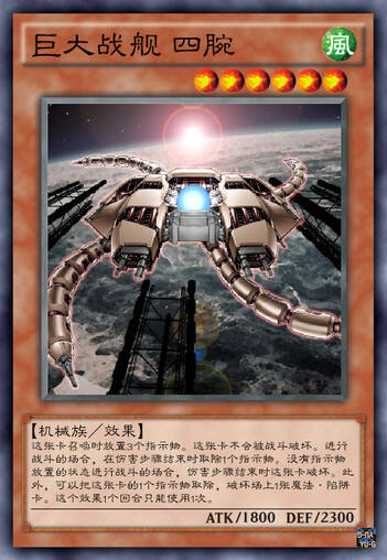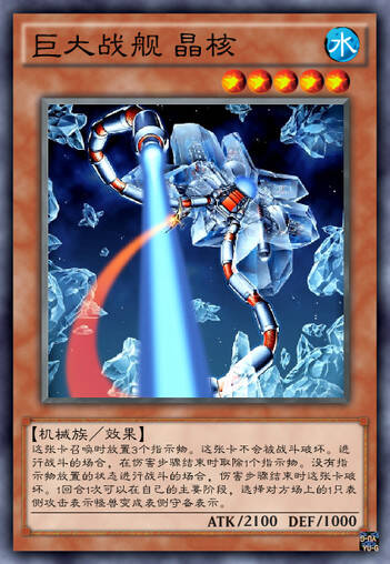 第二只巨大战舰,等级和打点均比巨核低一点,效果基本一致但是多了一个主动效果,将对面一只怪兽变为守备表示。