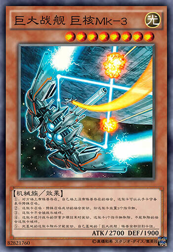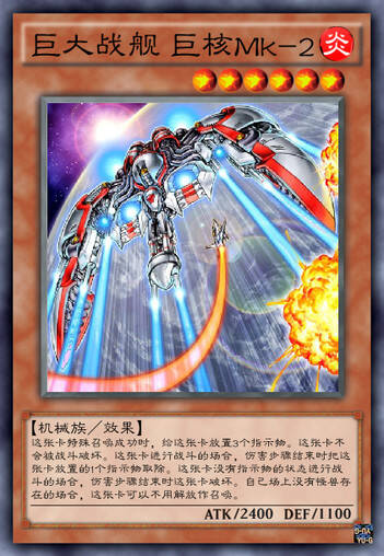 巨核Mk-2拥有特招放置指示物的能力,同时在自己场上没有怪兽时可以不用祭品召唤,一定程度上解决了【巨大战舰】第一个Boss登场的问题。