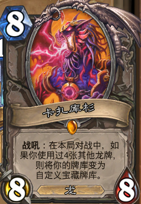 卡扎库杉给我们提供了打后期的可能,他发现的很多卡牌都可以帮助大帝一击致命,卡扎库山最重大的作用是解决大帝来晚的问题。