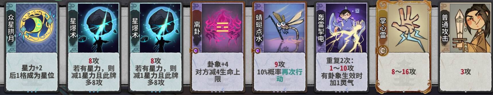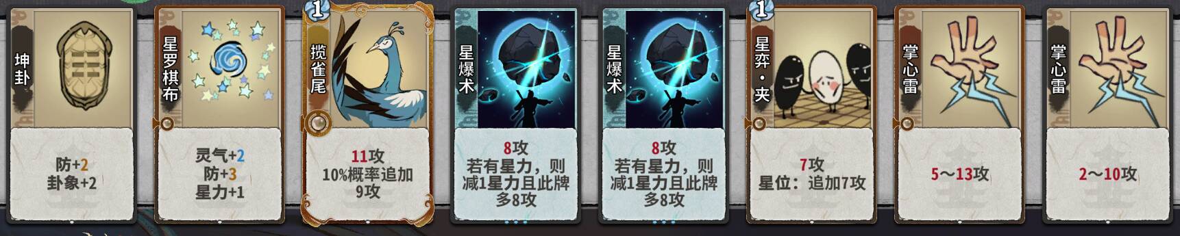 星爆术不要和了,拿一个加星力的牌,加上筑基仙命没有星力时加卦象给1星力,正好两星力触发两次星爆术