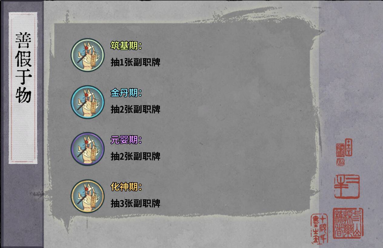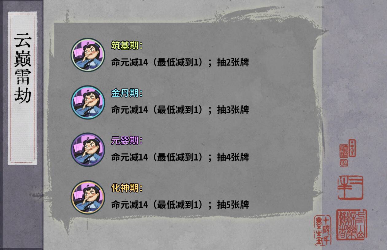 仙命的选择看前面仙命。这个时候元婴期的牌基本凑齐开始拿化神期的牌,并构建最后牌组