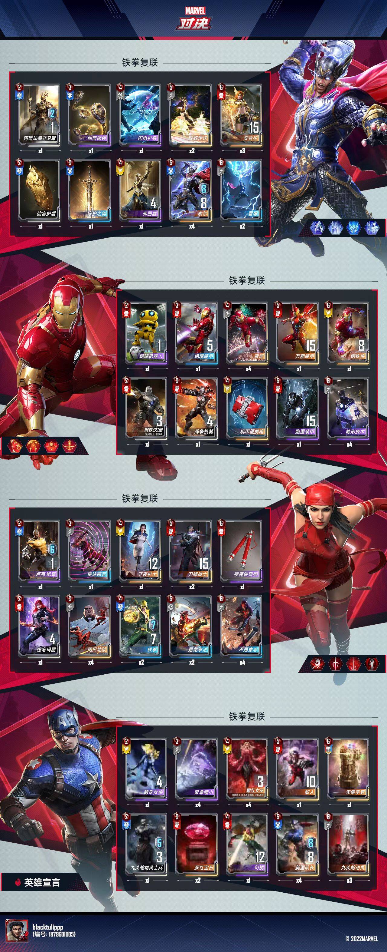 打到只剩4人时基本我们是早早处于6本的状态,可以找一些合适的针对卡。成型阵容,基本是蚁人(刀锋),女巫,幻视,带仙宫枷锁的铁拳,美队/雷神/钢铁侠,合适的针对卡。