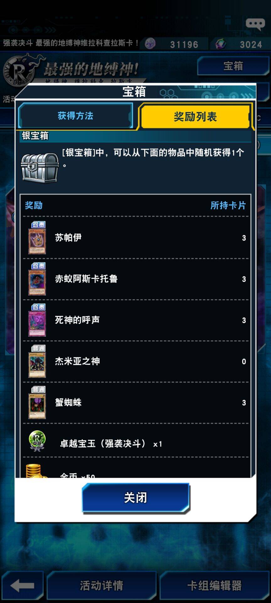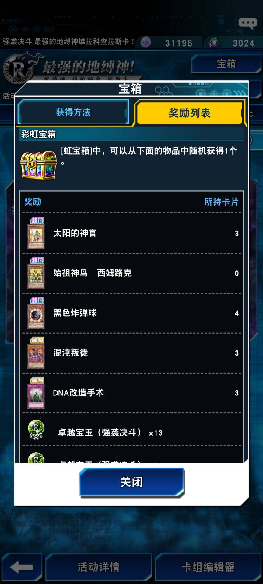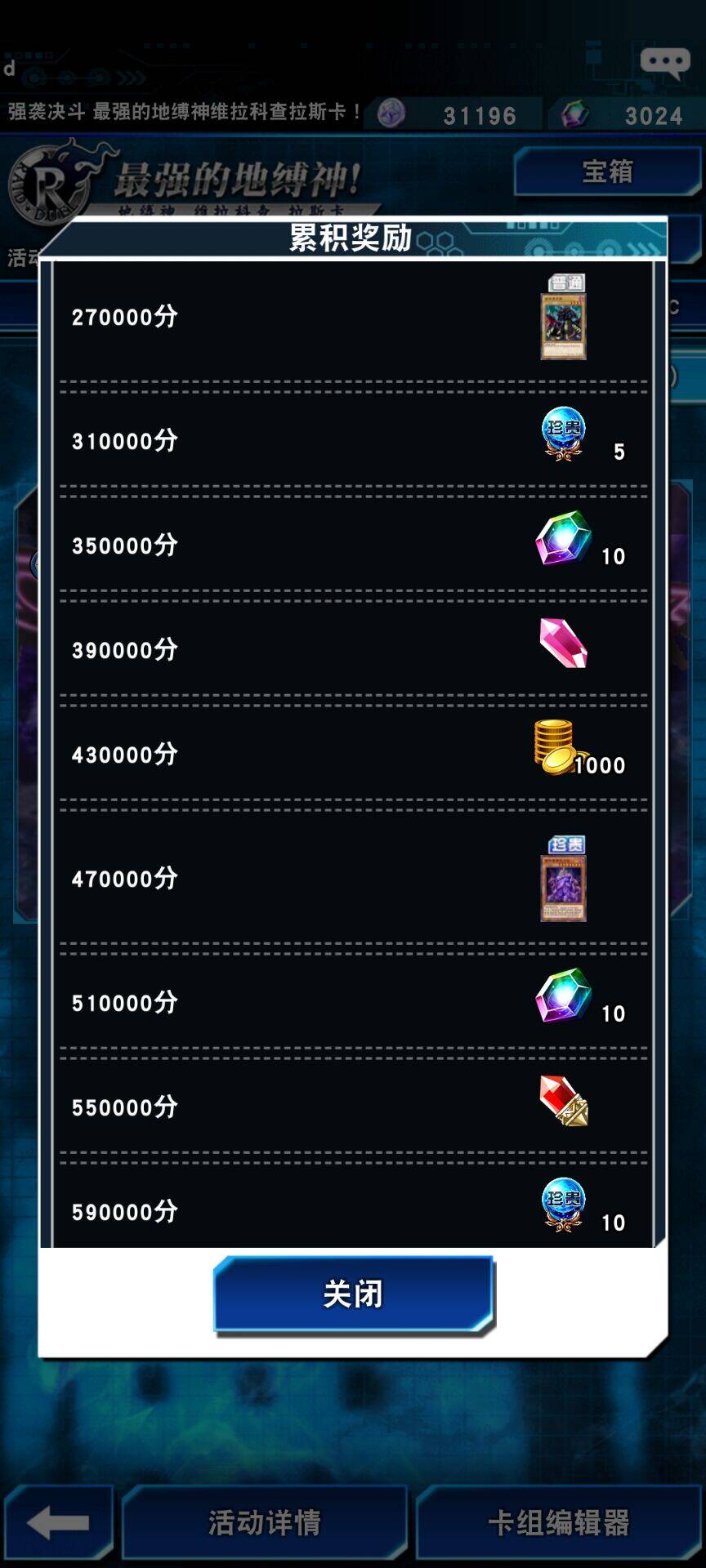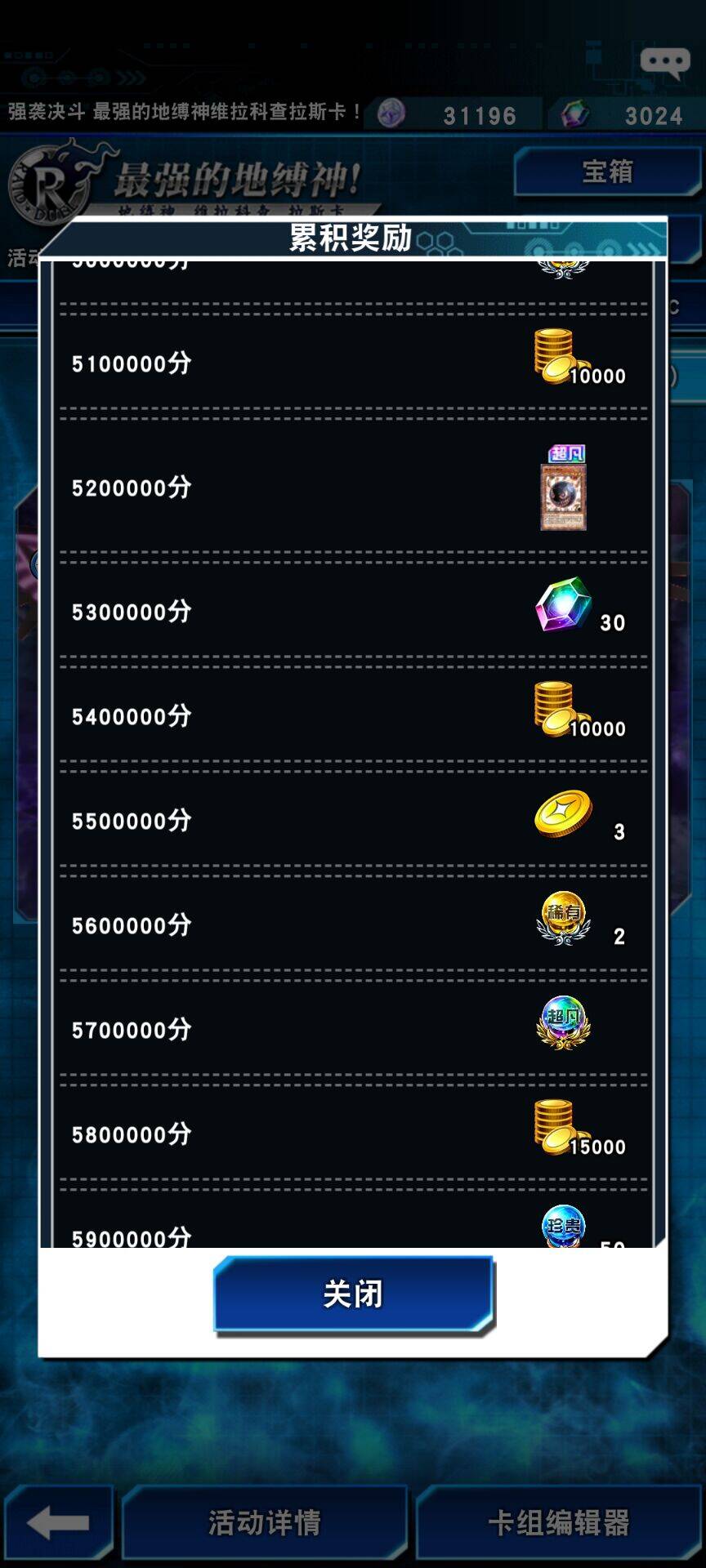 根据地缚神的讨伐情况获得大量宝箱与积分,开启宝箱或积累积分即有机会获得超凡卡「始祖神鸟 西姆路克」等活动限定卡片以及宝石、金币等奖励!