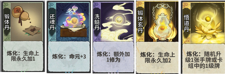 弈仙牌的魅力在于根据对局实际来牌以及当局匹配到的对手的流派灵活进行调整,所以笔者这里不推荐使用一套固定的过渡套牌,灵剑胡了就用灵剑过渡,云剑来得多直接满场云剑过渡到化神期都是可以的,注意留一下剑意相关的牌即可。
