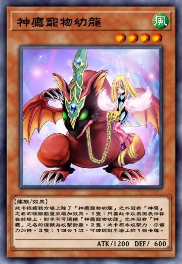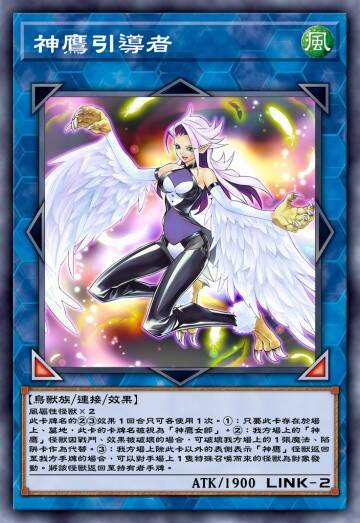 神鹰本家link,同时也是风属性泛用link。①效果略,②效果用魔陷代替神鹰怪兽破坏,可和【歇斯底里的签名】配合,但是偏鸡肋。③效果可和爪牙粉碎或舞者配合,但是不如爪牙粉碎直接弹怪来的简单直接。