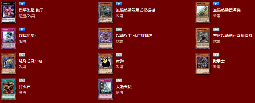 无限起动终于要启动啦!!!本家R9大哥,还是个泛用R9,用本家收割机和挖掘机的调星效果非常好出,其他卡组想带恐怕就没那么好出了。①效果,一速取对象解场,一般情况下保底解两张卡,还不错。②效果为战破对手怪兽然后牛对手怪兽当垫子,没有一回合一次。③效果墓地诈尸,但是cost必须是自己场上的机械族链接怪兽。但是诈尸回来是守备表示,对于这张卡来说守备表示很容易被解掉,不算太好。②③效果均为无限起动本家超量怪的通用效果,所以后面就不赘述了。