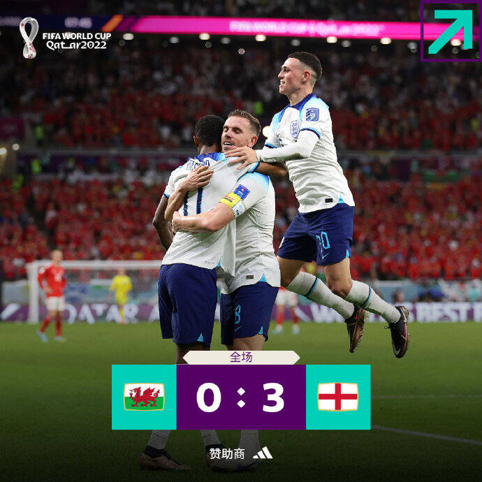易边再战,第50分钟,英格兰获得任意球机会,拉什福德主罚直接破门。随后,凯恩禁区外斜传,福登破门。第68分钟,英格兰后场策动进攻,拉什福德带球插入禁区低射将球打进,上演梅开二度。最终凭借下半场的进球,威尔士0-3英格兰。英格兰最终积7分排名B组第一,昂首晋级淘汰赛。