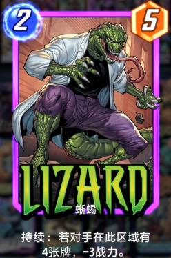 除了可以针对对方的蚁人外,这张卡也可以轻易的在6费拯救我们的蜥蜴。而且很容易让对方误判而被诱导出snap加倍。我手里有她的时候,胜率不一定高,但出场就吃到8分简直不要太多次。