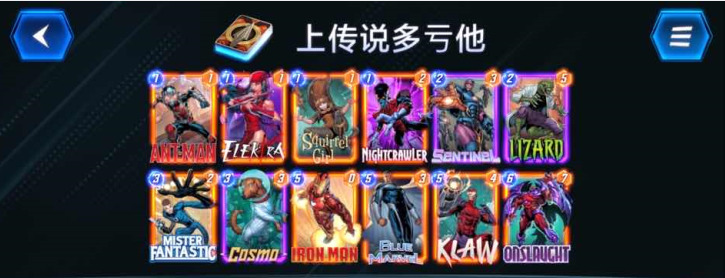 如果这些卡不全,可替换的单卡有:鹰眼,曼蒂丝,美队,惊恶先生,惩罚者,克劳一时之间没有的话也可以用卡扎尔临时替代。