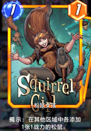 松鼠女有两个作用,她本身是一个可以突破很多场地限制的1卡池卡组,针对各种2346回合、123费、永远都不给放置牌的场地,这张牌都是有条件突破这个限制塞进去的,而且他可以吃到蓝惊奇buff提到2攻,甚至被狂攻直接拉到3攻。本身稳定1/3也是很优秀的1费单卡。