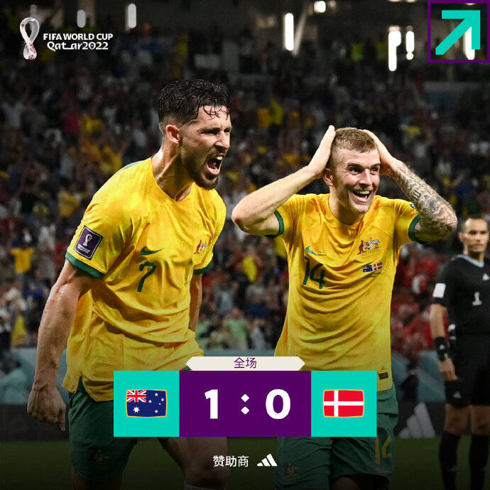 最终澳大利亚1比0丹麦,时隔16年再次闯入世界杯淘汰赛。