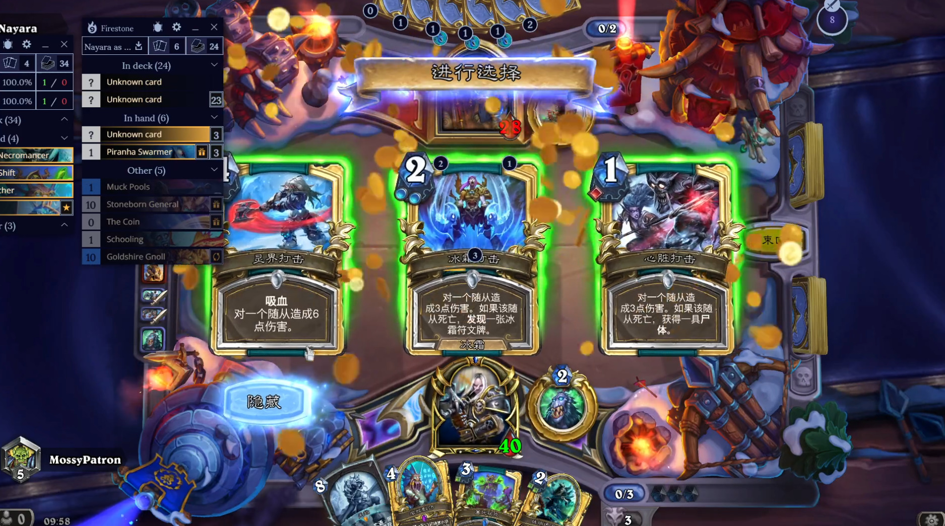 冰霜打击能发现这张牌,简直是离谱。我实战中遇到的对手,遇到过用冰霜打击解自己的亡语者,然后又找到了亡语者,复制了一手7费的冰霜巨龙之怒 ,加上还有一些直伤,后期是真的赖皮。一堆直伤玩的像一个冰法。