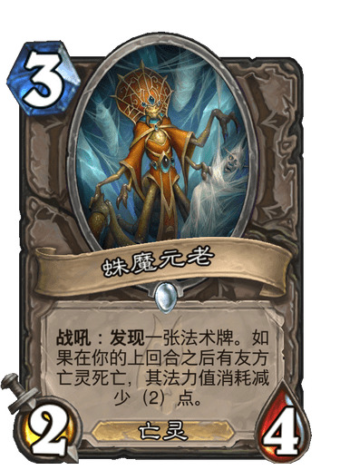 这张卡的地位我觉得等于瞎子的混乱打击,基本上没有瞎子会不带混乱打击吧?只要你混绿了,那基本上这张牌就是必带的,这张解牌的前期节奏太优秀了,而且可以被蛛魔元老减费到0费,3费准时打出来这个combo可以暴打快攻卡组。给我印象深刻的原因长期出现在发现池里,效果非常强!