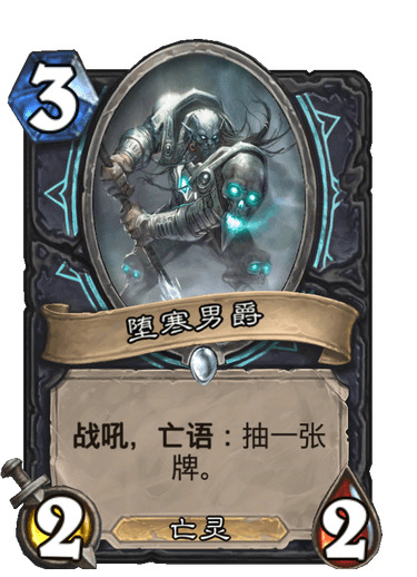 28+2或者38+2的卡,DK三费的曲线非常之空,这张堕寒男爵没有颜色限制,基本上所有DK都可以带,我反正自己组牌的时候都先塞两张这个,实战感觉还不错。