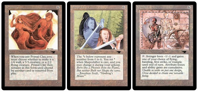 古文明之战是万智牌的第二个扩充系列,同时也是第二个具有能更改形状的生物的系列。和限量版(第一版)不同的是,这是用生物改变自己,而不是複製另一个生物来表现。Primal Clay让你可以在施放时从三种型态中选择一种、Shapeshifter让你可以分配它的攻防数值,然后Urza's Avenger能以暂时失去攻防的代价获得各种异能。这些卡牌都将变形这个想法推往新的设计空间。这些生物都没有生物类别,因为当时的神器生物都没有生物类别。不过,变形兽这张牌上的这三个字是第一次出现在卡牌上就是了。