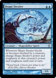 神河任侠传的Shape Stealer使用的是流行文化中常见的受欢迎比喻,即变形兽变成和它对打的生物。它也是第一个具有变形兽以外生物类别(精灵)的变形兽。