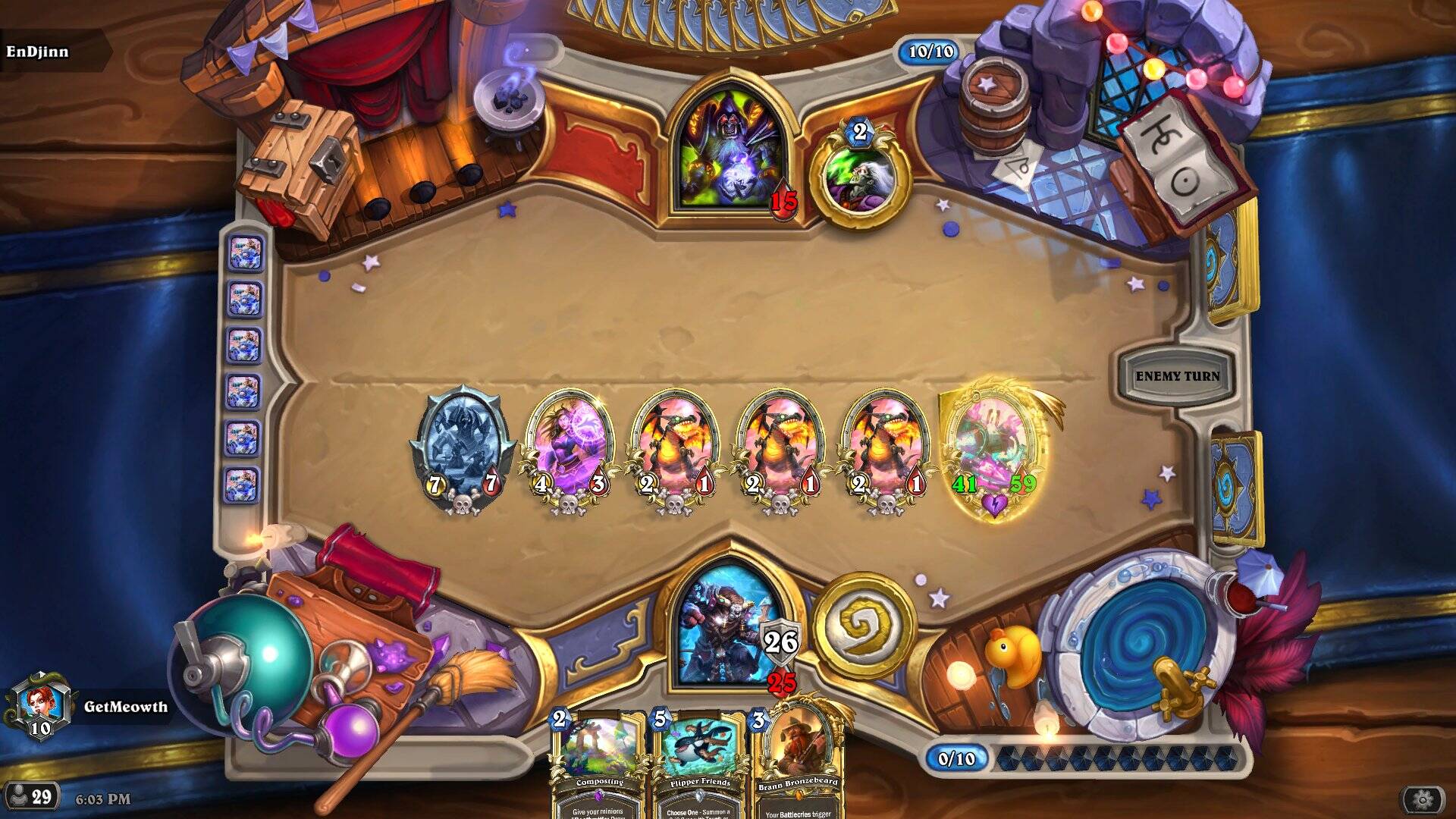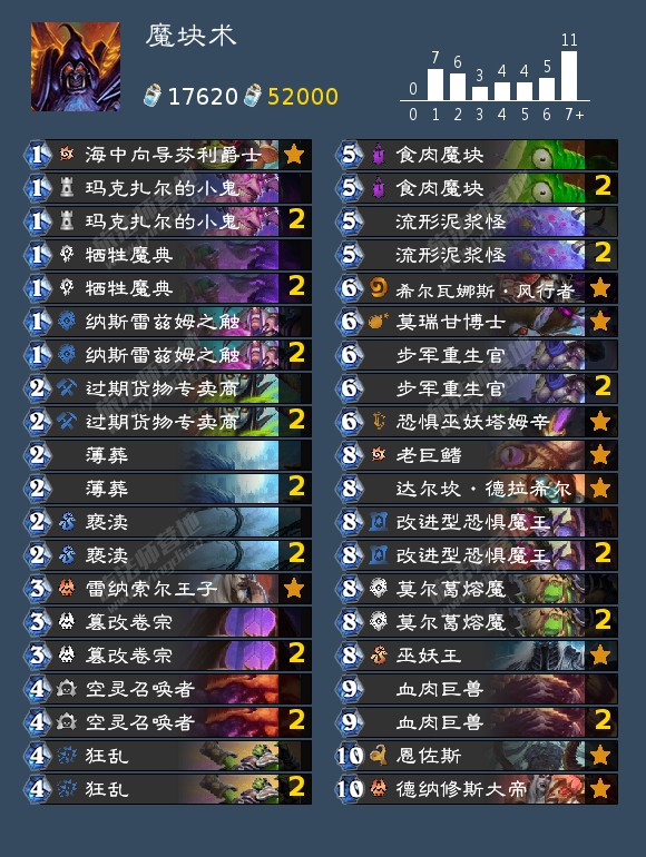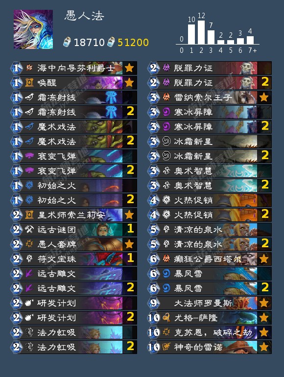 新版本的愚人法要进入狂野其实只在神棍老师的基础上改一张大法师罗曼斯就足够了。能量塑形师并不好适配愚人法这套从本质上来说属于防守反击的卡组,并且仅依赖手牌中的法术变为+2费用的法术有的时候还会帮倒忙,虽然是法师之魂的卡组,但总归还是要往更容易赢游戏的方向去。